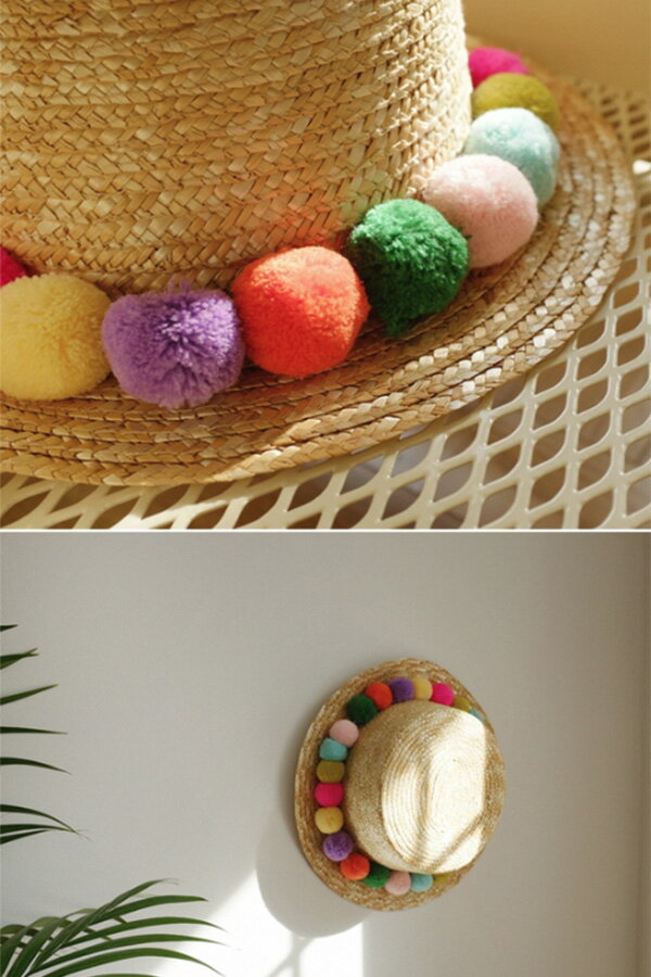 水着やワンピースに合わせてもgood、母の日のプレゼントやサンカット(UV対策 紫外線対策 日焼け対策)にも大活躍! 2017 NEW Kids Girl Summer Pom Pom Visor Sun Straw Hats Handmade Panama Hats Parent-child Hats Flat Top Beach Hats Wholesale 【セレクトショップ diva closetとは?!】 京都 烏丸に店舗があるセレクトショップです。