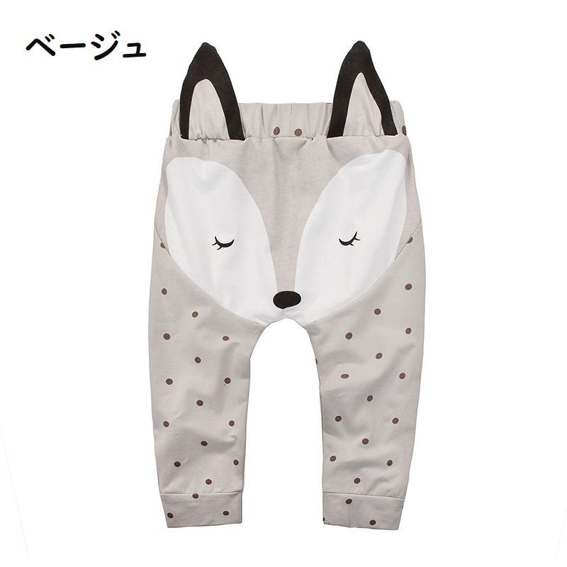 送料無料モンキーパンツ モンキースパッツ ボトムス ベビー用 子供服 男女兼用 長ズボン ズボン ロングパンツ サルエルパンツ キツネデザイン ウエストゴム 裾リブ ドット柄 耳付き キツネ 狐 きつね 動物 アニマル プチプラ 可愛い かわいい カジュ