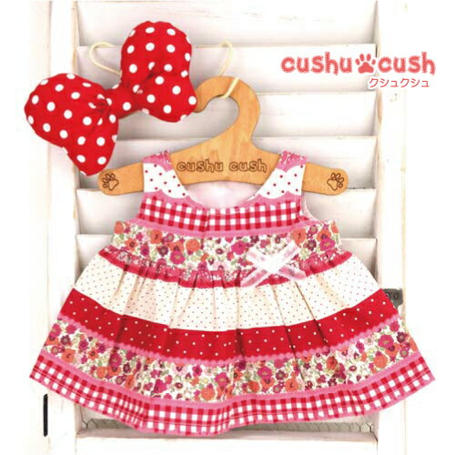 かわいくてカッコイイ、ダッフィーにぴったりのお洋服 ステラルー用のお洋服 ニットワンピ・ペアセット カントリー雑貨コットンバニーのオリジナルブランド cushu cush(くしゅくしゅ)のワンピースとリボンの2点セット とってもかわいくてお得なファストファッションのお店です♪