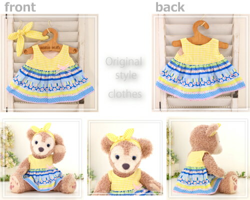 かわいくてカッコイイ、ダッフィーにぴったりのお洋服 ステラルー用のお洋服 カントリー雑貨コットンバニーのオリジナルブランド cushu cush(くしゅくしゅ)のワンピースとリボンの2点セット ノースリーブType ※このページのお洋服は真ん中の286です。