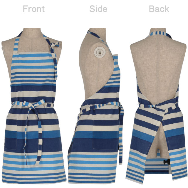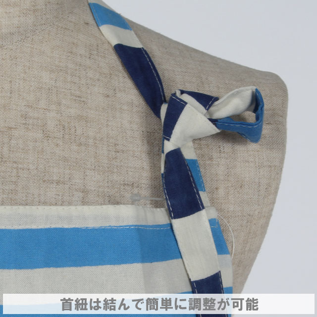 シンプルなデザインと、カラフルでかわいいボーダーやストライプ、ドット柄がおしゃれな ホルターネックエプロン。