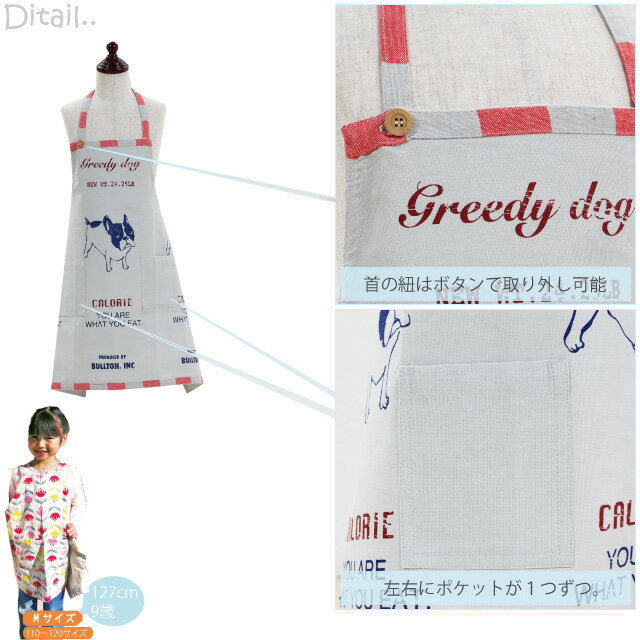 ギフト対応について メール便の規約についてはコチラをご確認ください フレンチブルドッグのブルトンのイラストとビンテージ風デザインがかわいい 子供用エプロン。